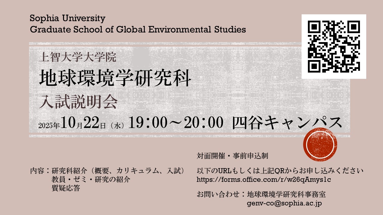 - 地球環境学専攻(5/14、10/22) 、フライヤー(5/14) 、フライヤー(10/22)【2026年度入試説明会】