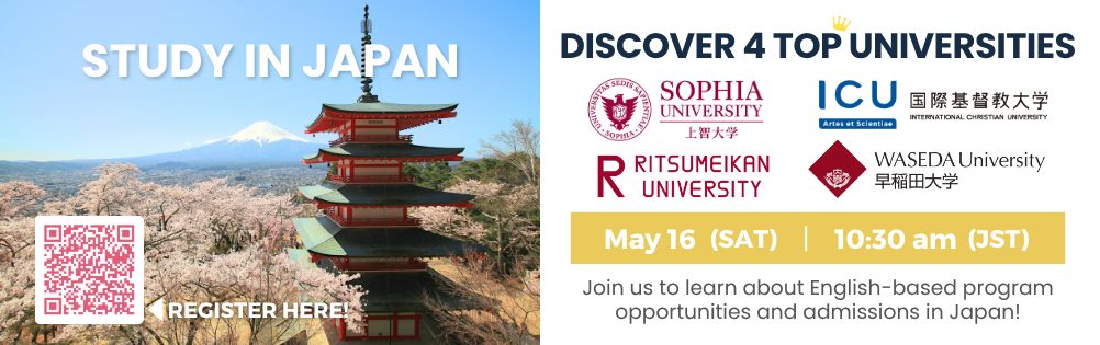 日本の英語学位プログラムについて理解を深めるとともに、各大学の入試担当者から直接情報を得られる貴重な機会です。ぜひご参加ください。